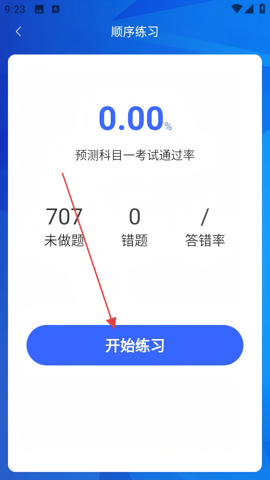 2、在顺序练习页面,点击【开始练习】按钮,进入答题界面。