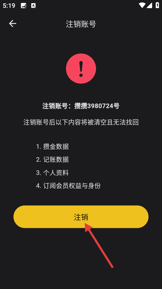 4、在注销账号确认页面,点击【注销】按钮,完成账号注销操作。