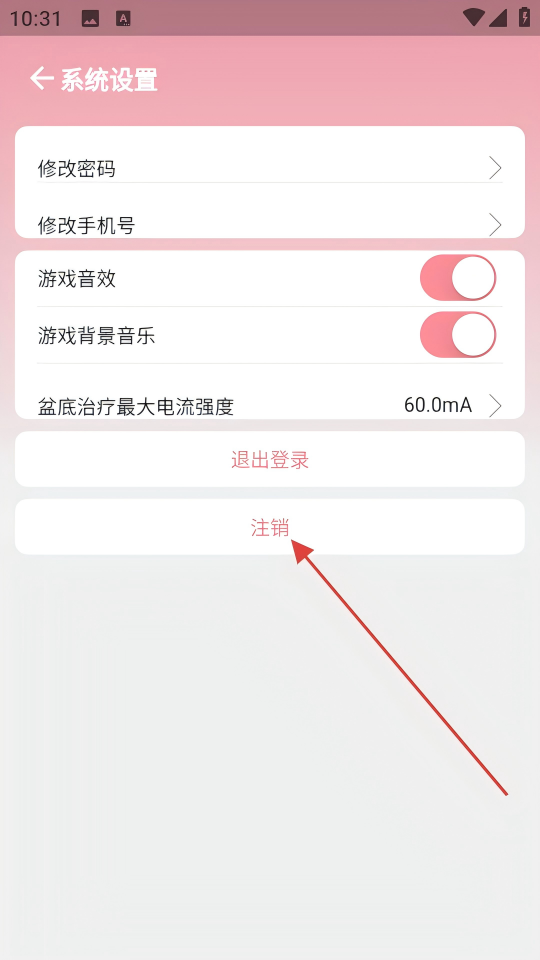 3、在系统设置页面,点击【注销】选项,可触发注销提示弹窗。