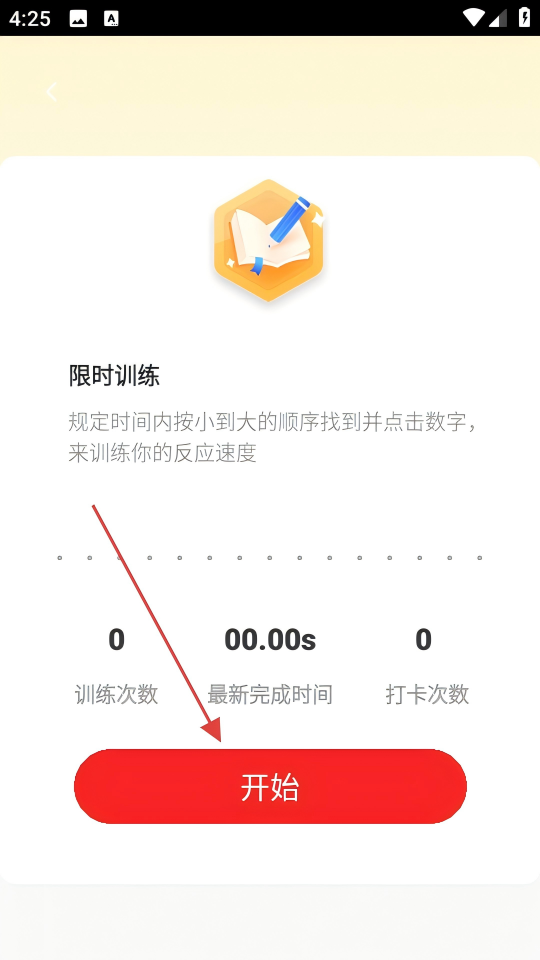 3、在限时训练页面点击【开始】按钮,进入数字点击训练界面。