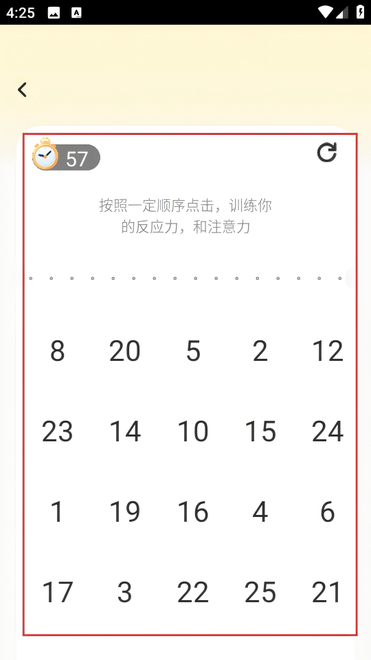 4、在训练界面按照从小到大的顺序点击数字,在规定时间内完成训练。
