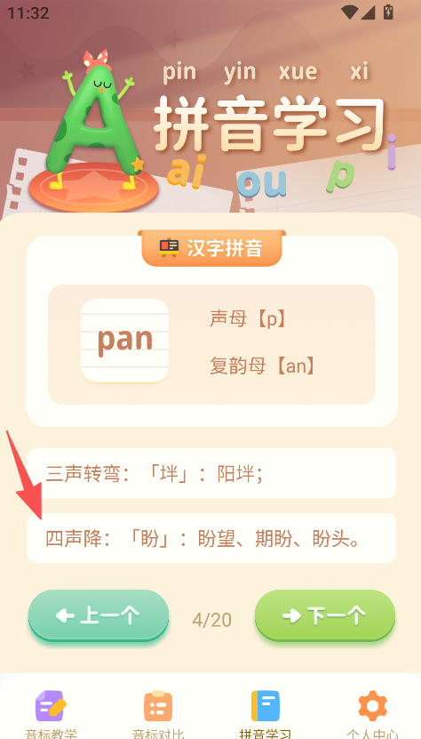 3、界面设计友好,功能板块分布清晰,操作简单,无论是拼音学习还是音标对比,都能快速找到对应内容,学习过程顺畅。