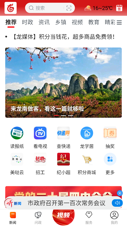 2、融媒体内容观看:开设视频栏目与龙直播,可观看《龙南新闻》及本地文旅、民生等各类视频内容。