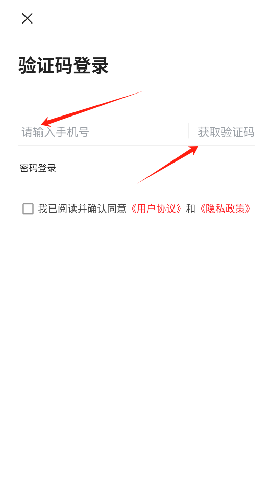 3、输入手机号,点击获取验证码,再输入即可。