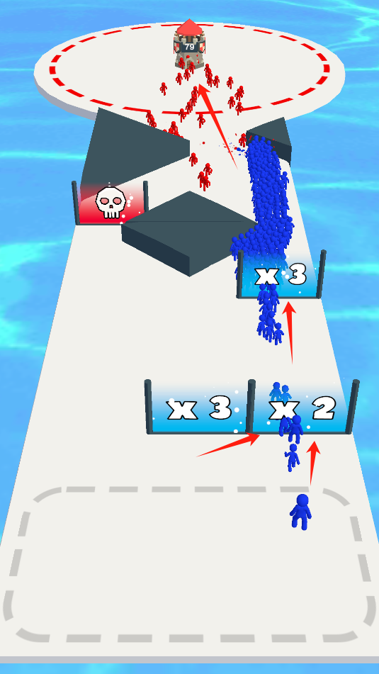 1、游戏中,在下方的区域中点击屏幕可生成小人,按住屏幕可生成一个巨人。