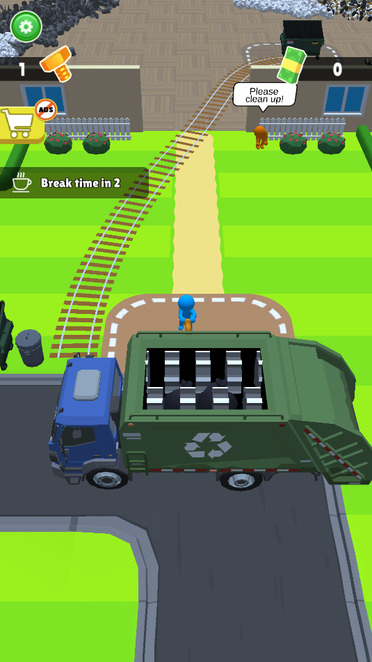 3、把垃圾运输到垃圾车里,即可获得资金,重复这个动作来获取更多的资金购买道具,升级。