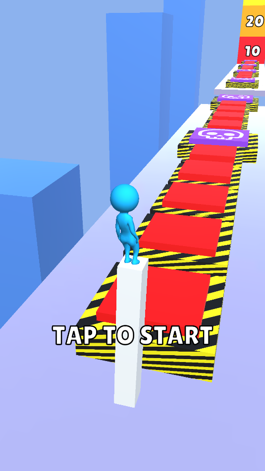 1、游戏中,点击并按住屏幕,使小人向前跳跃。