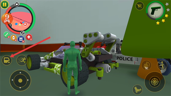 1、找到场景中的载具,点击左侧载具按钮进入驾驶状态。
