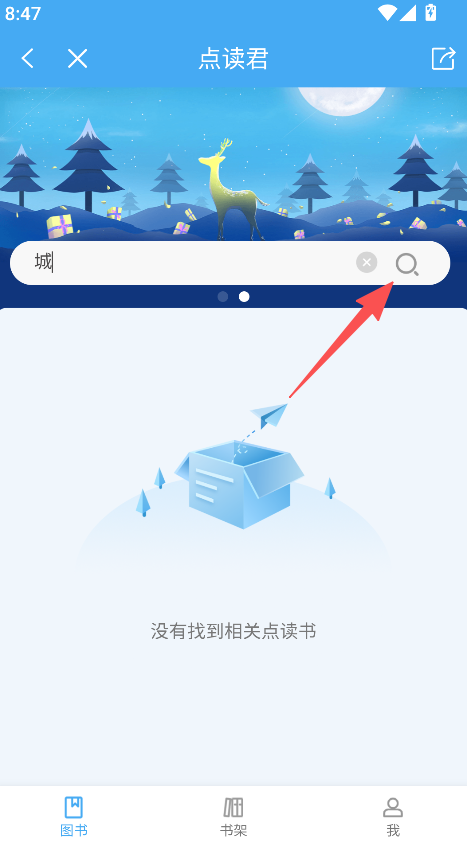 1、打开软件,在搜索栏输入关键词,查找点读书籍。