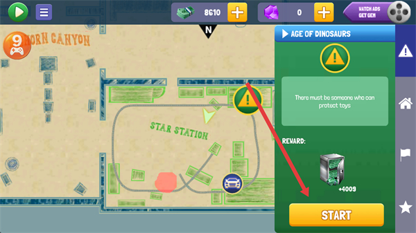 1、在地图界面找到AGE OF DINOSAURS任务,点击START按钮开启任务。