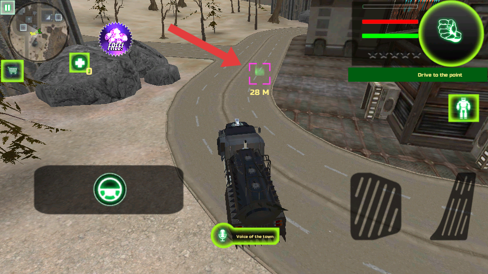 1、根据任务提示“Drive-to-the-point”,驾驶载具前往目标点,途中注意路况和距离提示。
