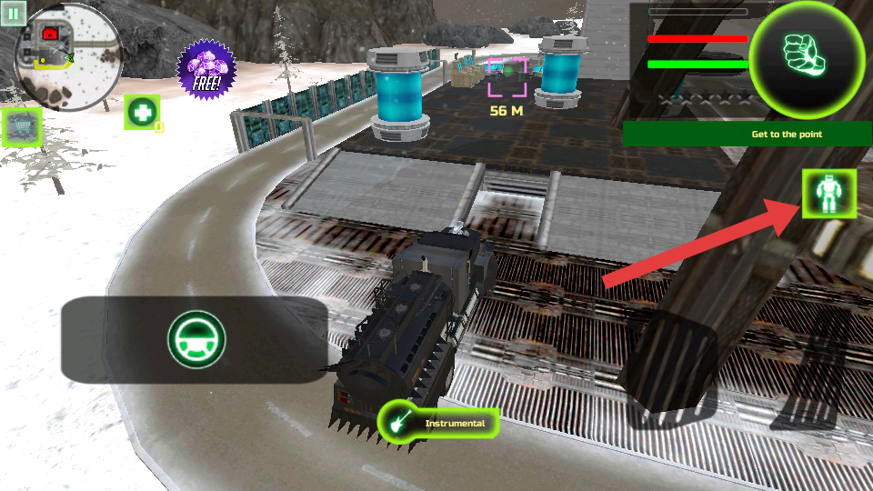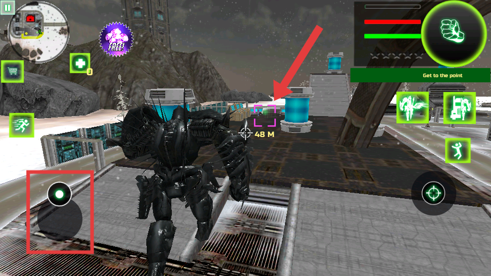 2、到达目标区域后,点击机器人变形按钮,切换为机器人形态,准备执行任务。