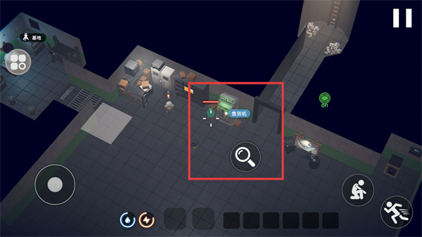 3、靠近房间内的【售货机】,点击界面中的【放大镜】图标,打开交易界面准备获取物资。