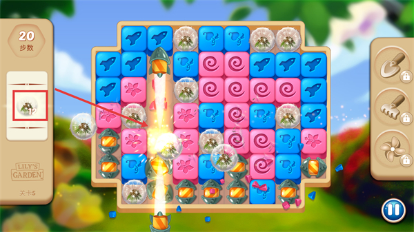 2、箭头指向带刺花苞,消除该花苞可完成对应关卡消除目标。