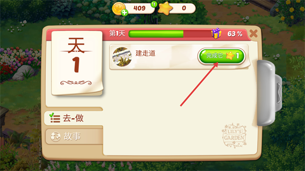 3、点击【去完成】按钮完成【建走道】任务提升进度。