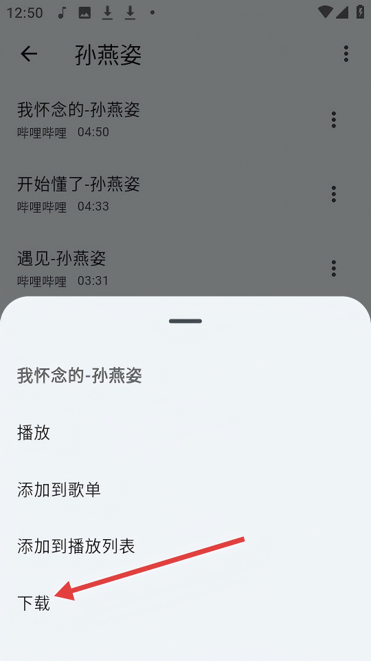 4、在【我怀念的-孙燕姿】的操作菜单中,点击【下载】可将该歌曲保存至本地。