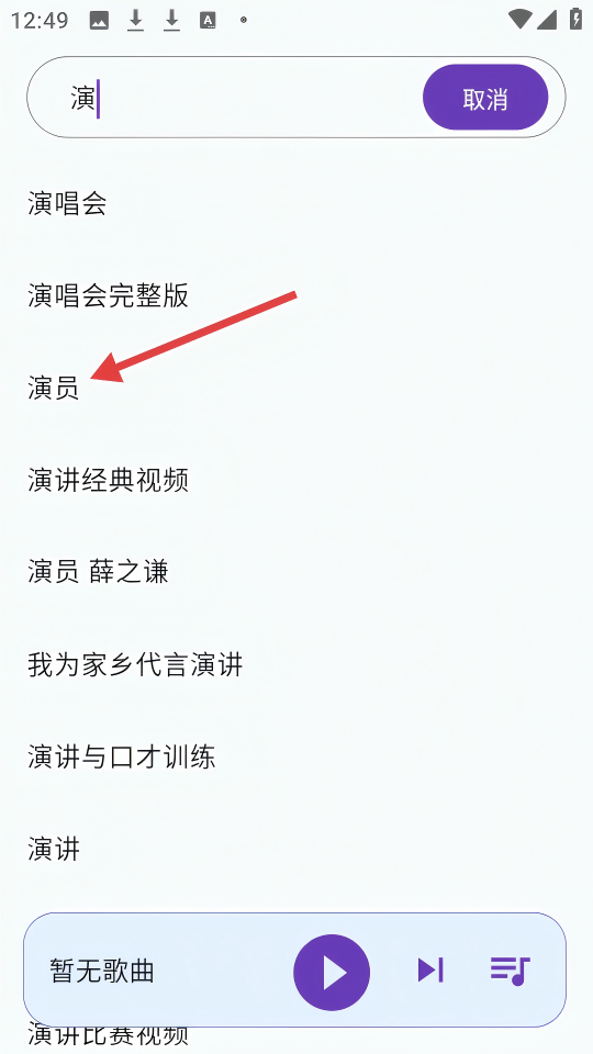 2、在搜索建议列表中,点击【演员】可快速定位相关内容。