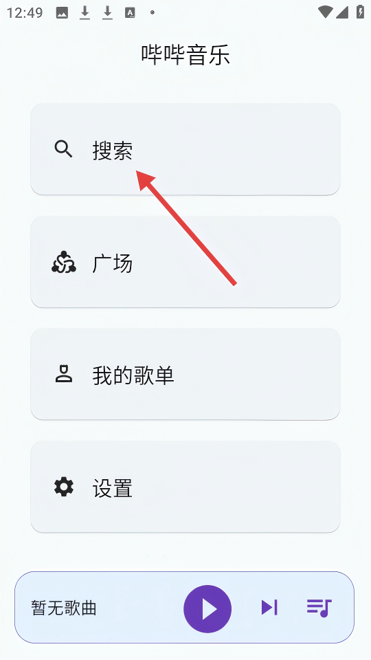 1、在【哔哔音乐】主界面,点击【搜索】可进入搜索页面。
