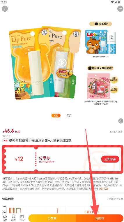 3、成功领券后页面显示券后价,点击“自购省”完成。