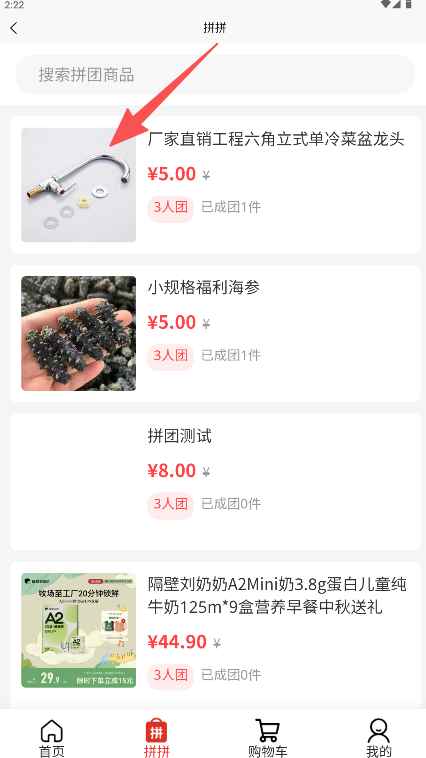 2、在拼团页面浏览并选择目标商品。