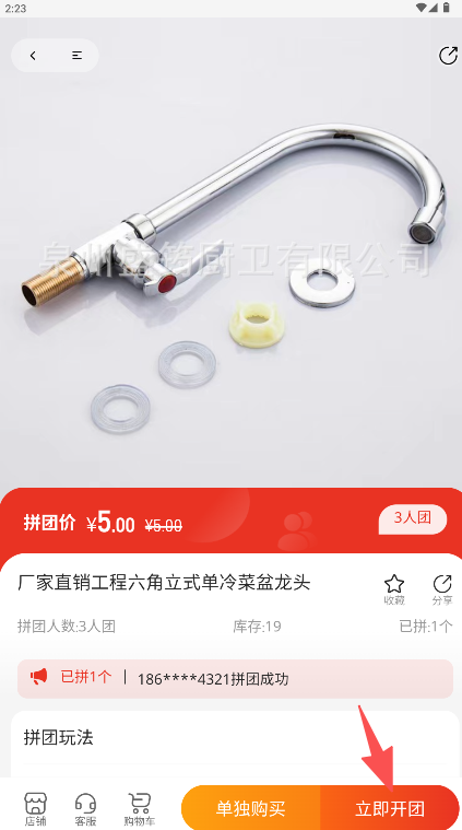 3、进入商品详情页确认拼团价与规则点击“立即开团”完成下单。