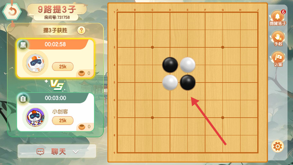 4、在围棋对弈界面,在棋盘上进行落子操作,参与真人对弈。