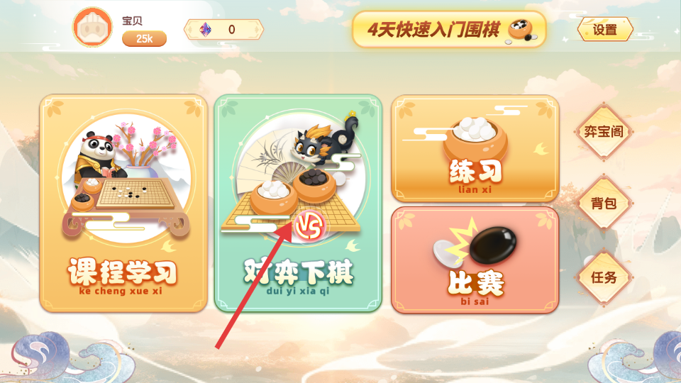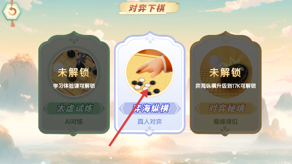 1、在主界面,点击“对弈下棋”选项,进入对弈模式选择页面。