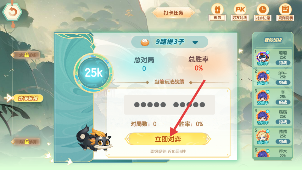 3、在对弈战绩页面,点击“立即对弈”按钮,进入围棋对弈界面。