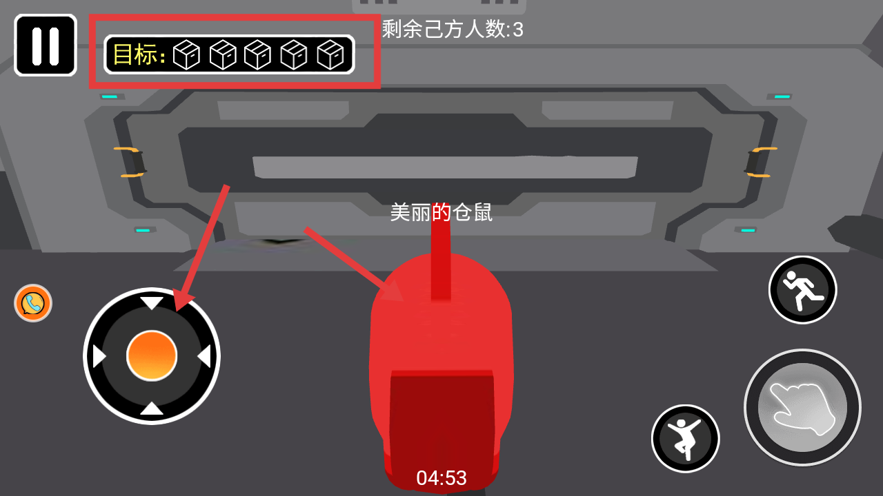 3、使用左侧方向键控制角色移动,完成【目标:五个箱子】的任务。