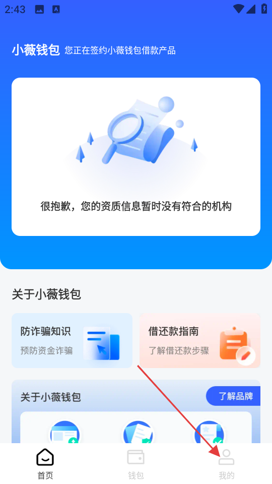 1、在【小薇钱包】界面,点击右下角【我的】,进入个人中心页面。