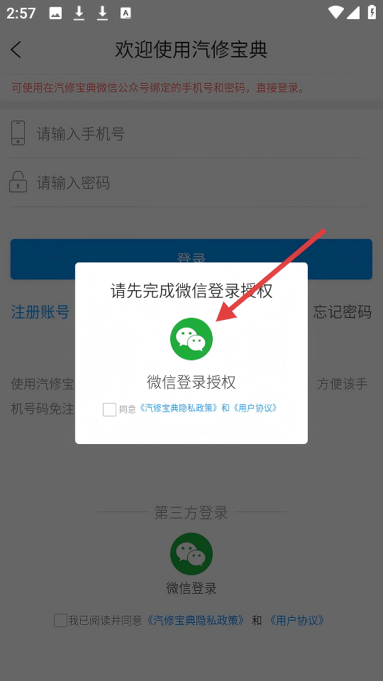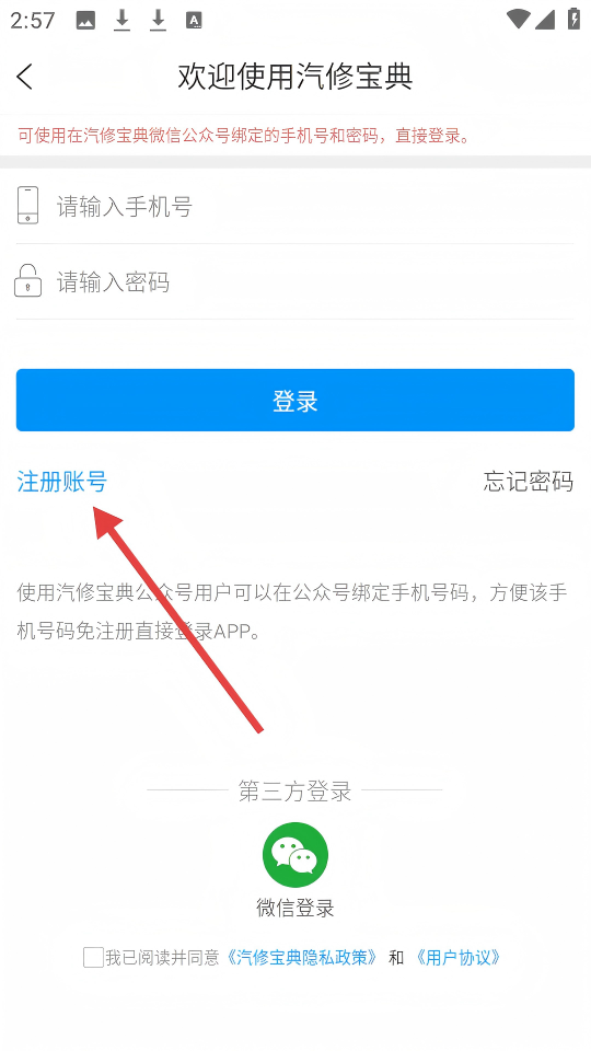 3、若未注册汽修宝典账号,可点击【注册账号】进行账号注册。