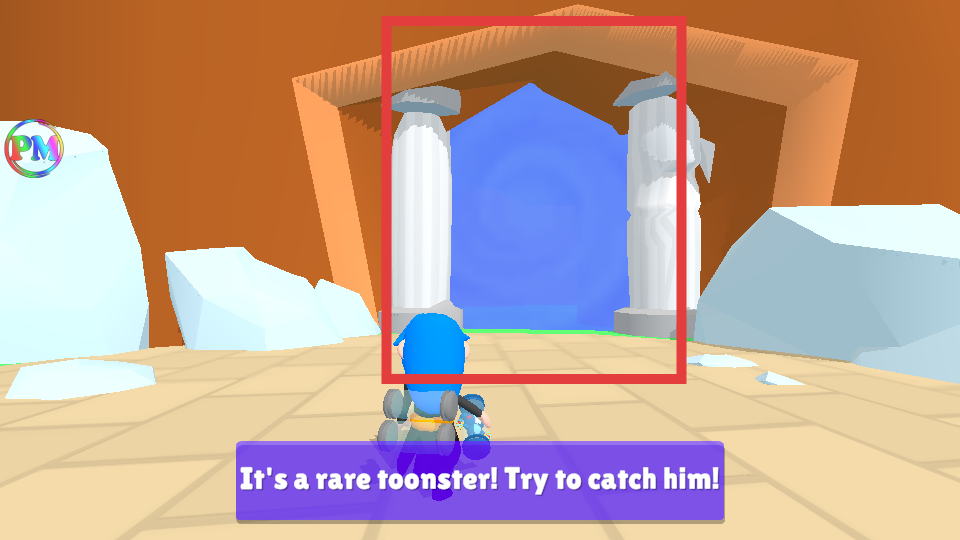 4、捕捉怪物后,穿过蓝色传送门,进入下一个区域,继续游戏进程。