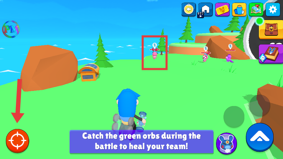 2、遇到怪物(如粉色怪物)时,点击左下角瞄准按钮,瞄准怪物准备捕捉。