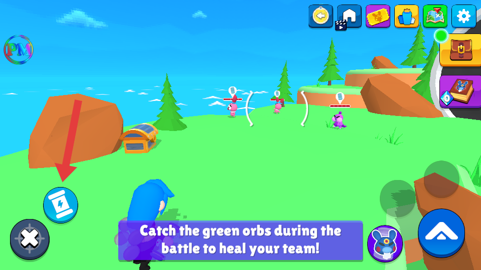 3、可使用左下角的技能按钮(如闪电技能),辅助捕捉怪物。