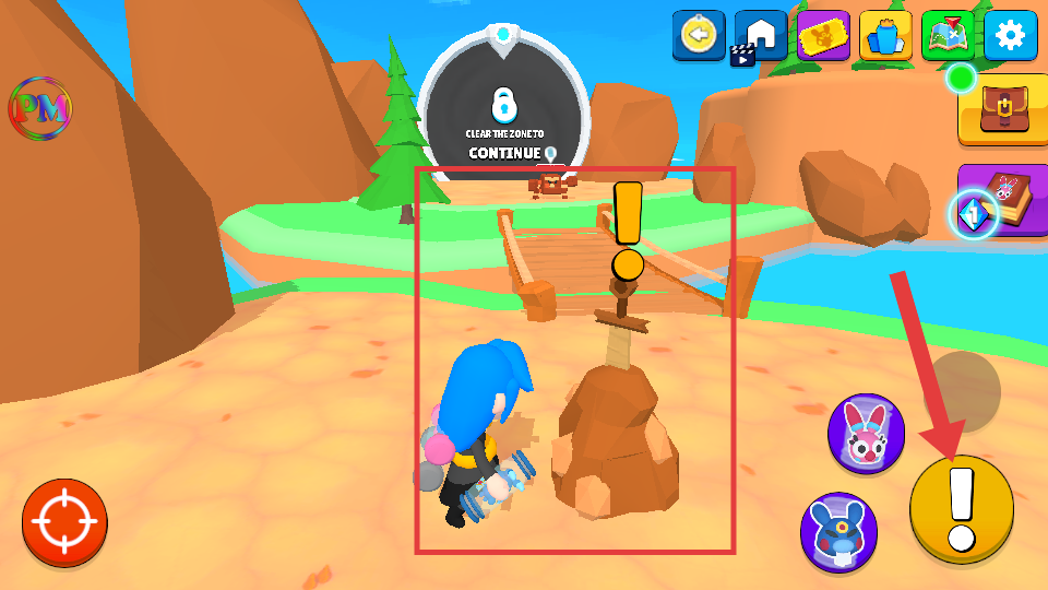 2、遇到带有感叹号标记的互动点(如插剑的岩石),点击右下角感叹号按钮,触发互动内容。