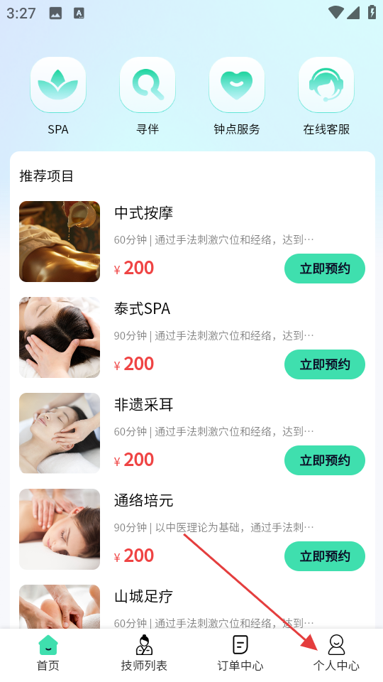 2、支持用户按时间安排与服务需求自由预约项目,操作流程简单直观,确保能及时对接技师,高效获取上门服务。