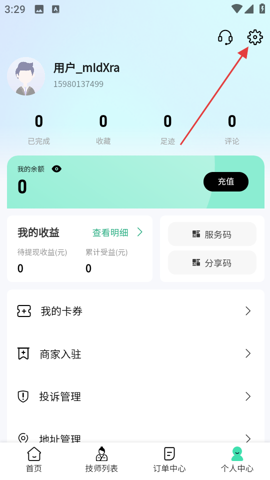 2、在【个人中心】页面,点击右上角设置图标,进入设置页面。