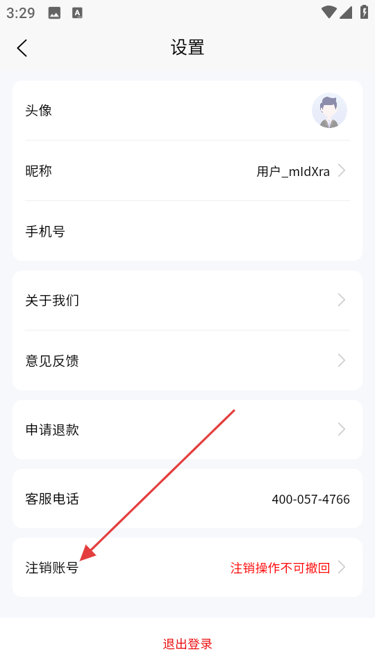 3、在【设置】页面,点击【注销账号】选项,弹出温馨提示弹窗。