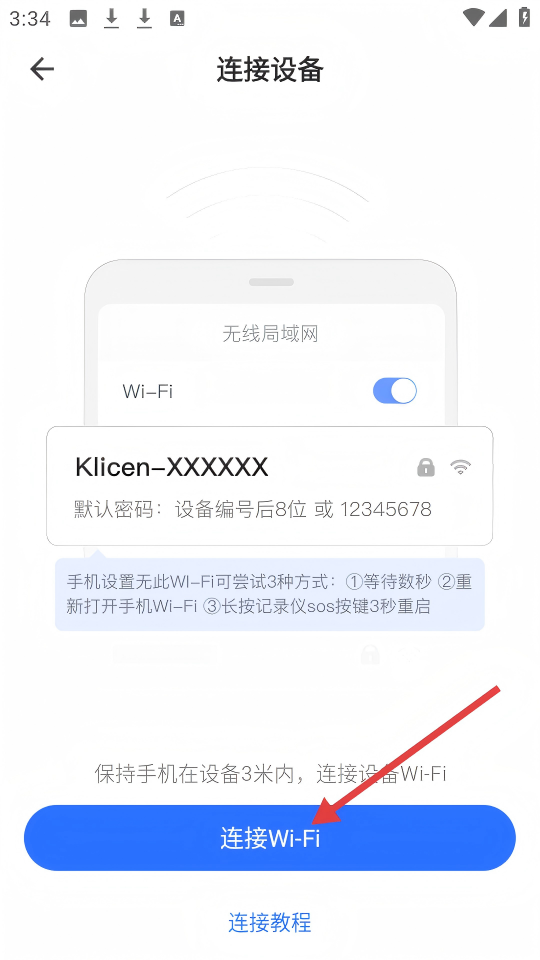 4、在连接设备页面,点击【连接Wi-Fi】,按照提示连接设备Wi-Fi,即可进行设备连接。