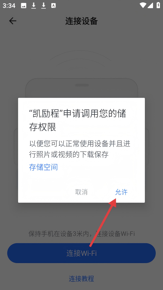 3、当“凯励程”申请调用储存权限时,点击【允许】。