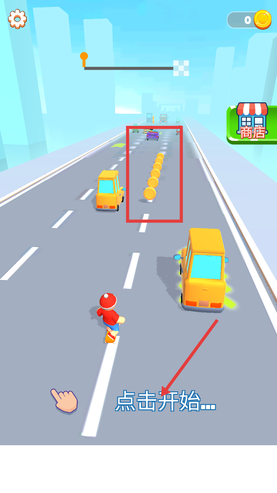1、点击【点击开始】进入游戏,收集道路上的金币。