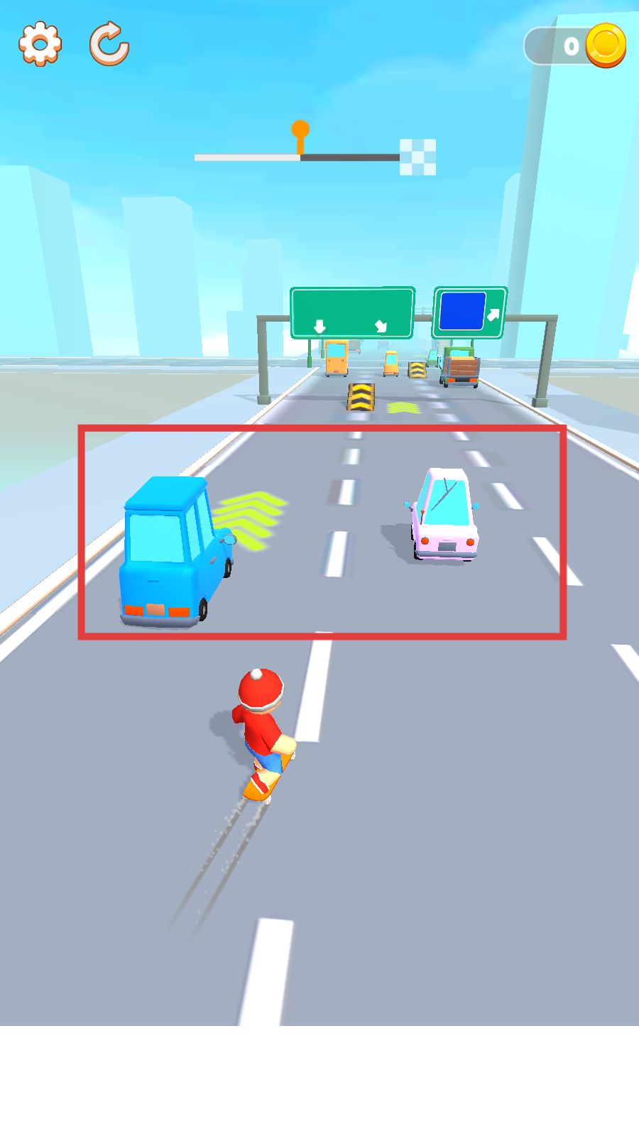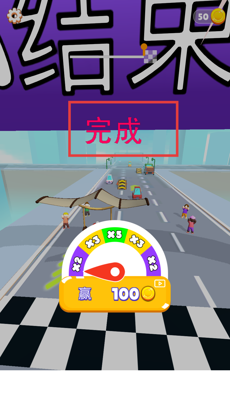 2、点击前方车辆出现一条绳索能加速前进,向终点方向前进。