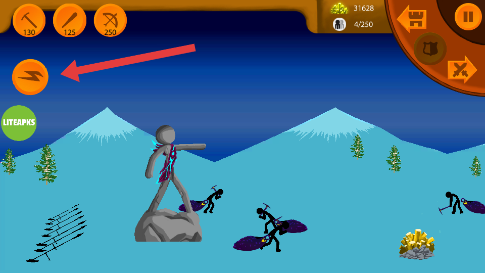 3、指挥军队与敌方战斗,利用兵种优势(如剑士近战、弓箭手远程),配合增益效果,击败敌方火柴人部队,夺取资源和领地。