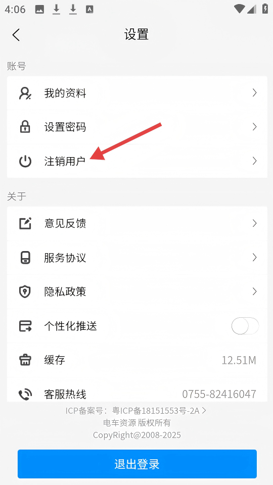 2、在【设置】页面点击【注销用户】选项,可进入账号注销相关界面。
