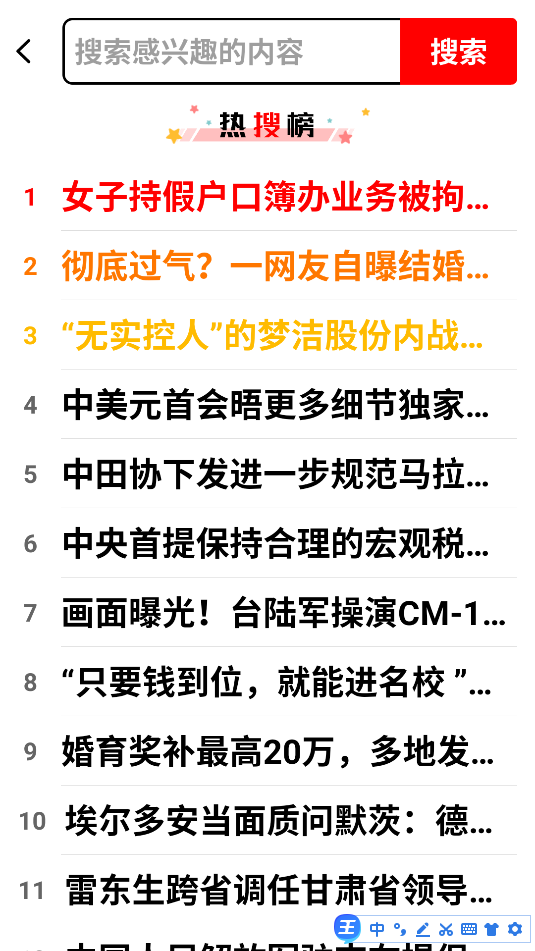 3、可以点击上方的搜索框,输入关键词,搜索各类新闻视频。