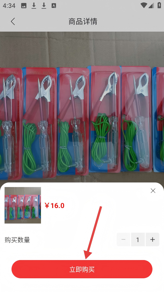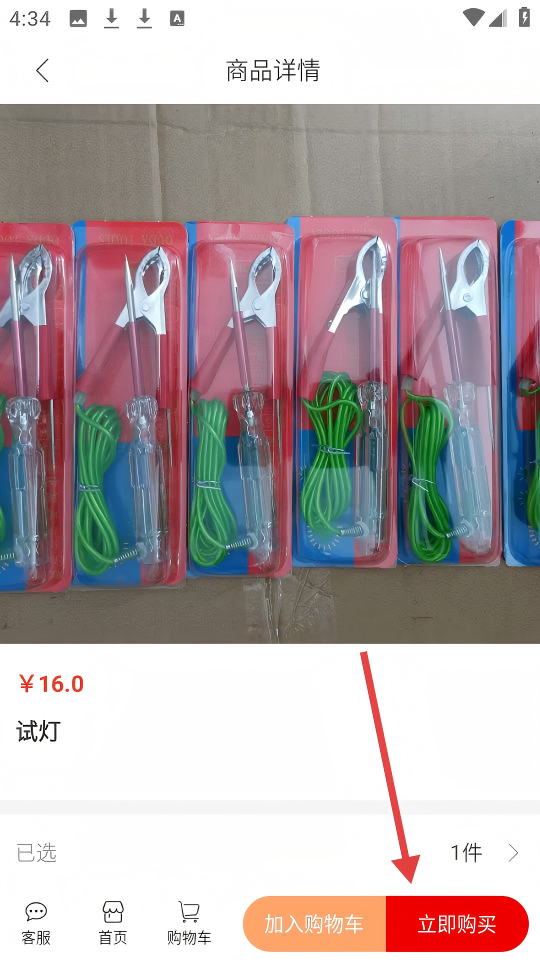 4、进入【试灯】商品详情页,可选择购买数量,点击【立即购买】按钮进行下单。