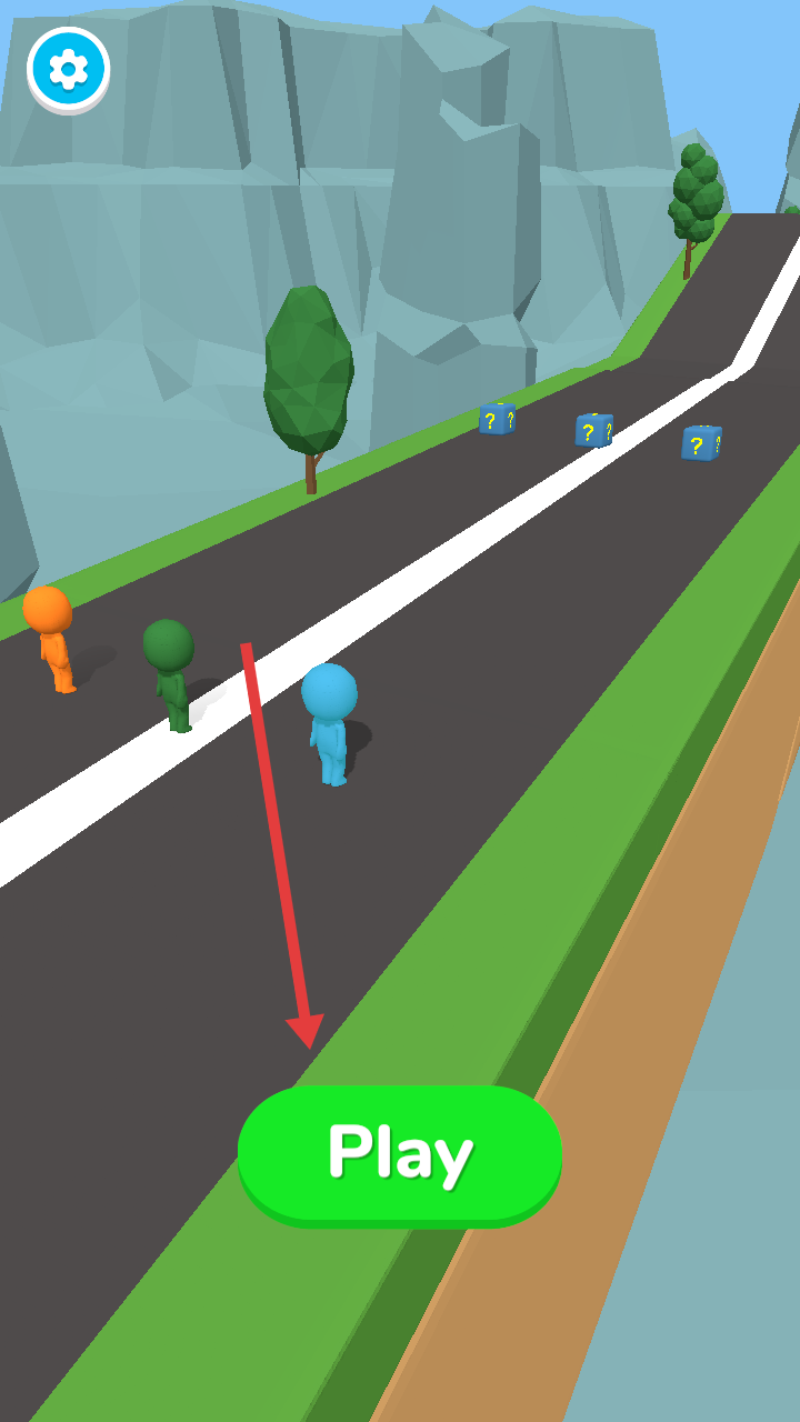 1、点击Play按钮,在山路赛道场景中开始跑酷挑战,操控蓝色角色参与竞赛。