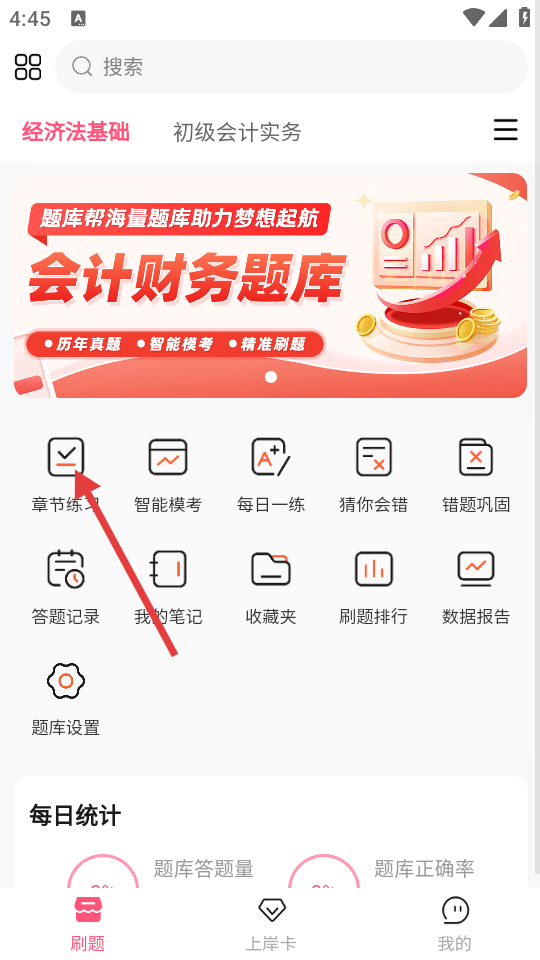 1、在首页中,点击“章节练习”选项,进入章节选择页面。