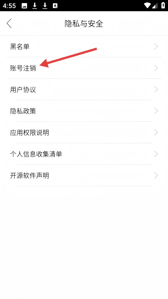 4、在【隐私与安全】页面,点击【账号注销】可进行账号注销操作。