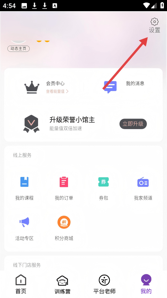 2、在应用【我的】页面,点击右上角【设置】可进入设置界面。